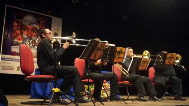 À noite, acontecerá uma apresentação do Quarteto de Trombones da Paraíba, a partir das 19h, no mesmo local das Oficinas.