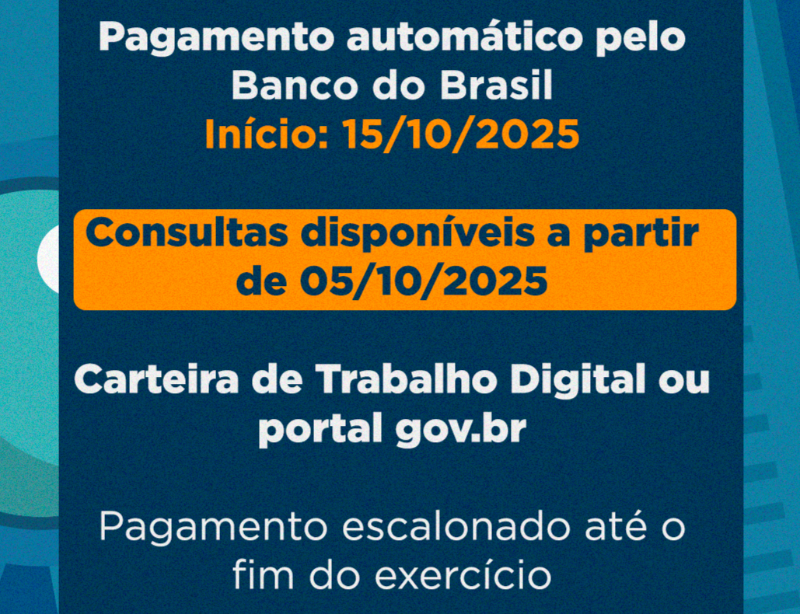 As informações sobre o direito ao recebimento poderão ser consultadas a partir de 05 de outubro de 2025, por meio da Carteira de Trabalho Digital ou do portal gov.br. O pagamento será efetuado de forma escalonada até o fim do exercício.