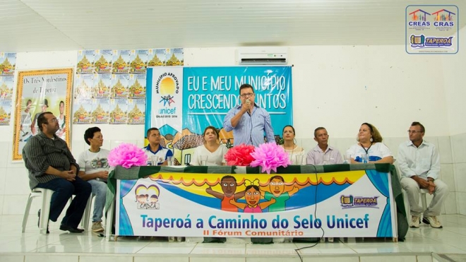 A Prefeitura de Taperoá, realizou na última sexta-feira (27/05), o 2º Fórum Comunitário Selo Unicef, com o intuito de avaliar a execução das políticas públicas de atendimento à infância no município. O Fórum teve como objetivo avaliar a caminhada do município rumo aos objetivos do Selo UNICEF, à concretização das Ações Estratégicas de Políticas Públicas e à Participação Social em Saúde, Educação e Desenvolvimento Social voltada para a criança e o adolescente, como, também, prestar contas à comunidade do que foi executado a partir do Plano de Ação Municipal e das desigualdades identificadas nos grupos de trabalho, ambos elaborados no I Fórum.