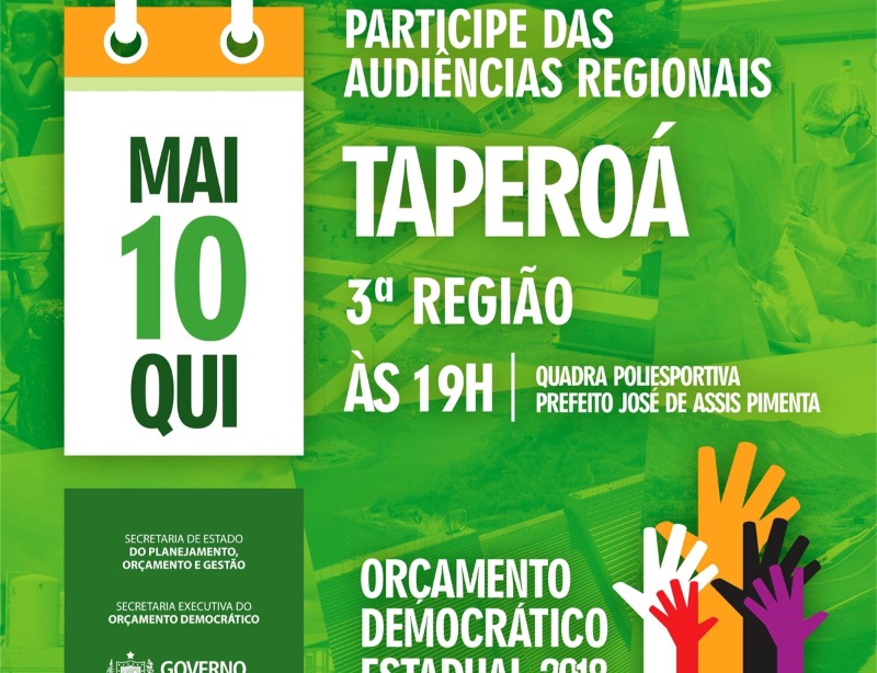 A audiência na cidade de Taperoá será realizada na quinta-feira (10), a partir das 19h, na quadra poliesportiva prefeito José de Assis Pimenta, localizada na “Vila Popular”.